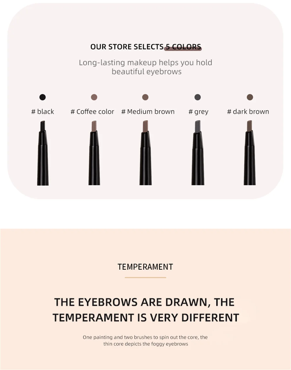 Dark Coffee Eyebrow Pencil with Dual-Ended Brush Define your brows with precision using this long-lasting eyebrow pencil, available in rich dark coffee, black, and gray tones. The ultra-fine tip delivers controlled application for natural-looking definition, while the integrated brush blends and shapes effortlessly. Waterproof and smudge-resistant formula ensures your brows stay flawless from morning through evening. Perfect for creating bold statement brows or subtle enhancement, this versatile tattoo-style pen delivers professional results with every stroke.