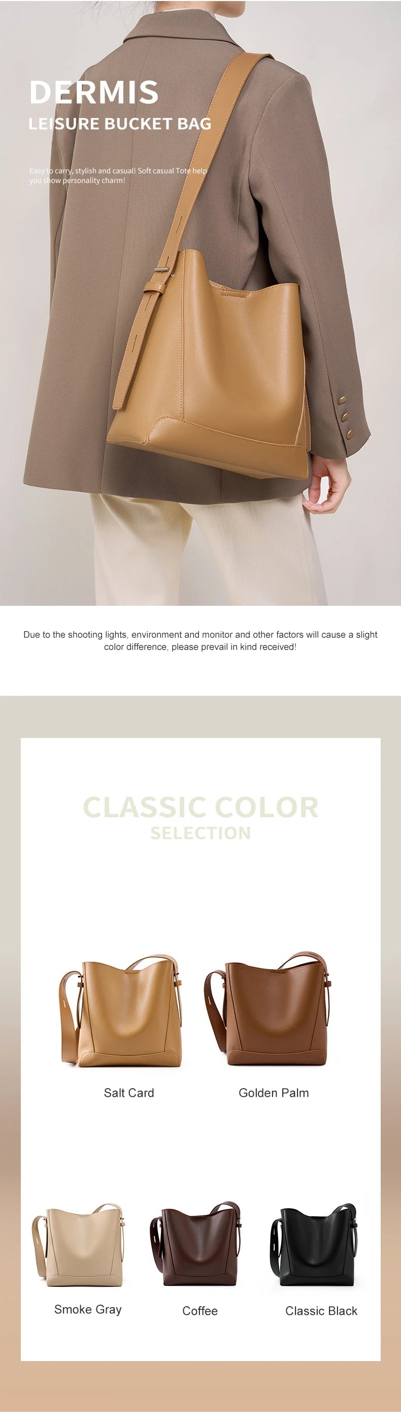 Elevate your everyday with this refined bucket bag, crafted from genuine cowhide leather in a timeless silhouette that transcends seasonal trends. The structured design transitions seamlessly from day to evening, while the adjustable crossbody strap offers versatile styling options. Premium leather develops a rich patina over time, ensuring your investment piece becomes more beautiful with wear. A sophisticated choice for the discerning woman who values quality craftsmanship and understated luxury.